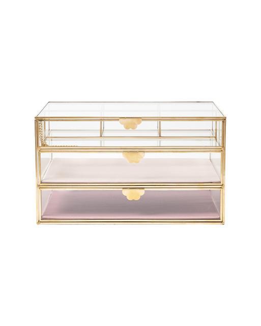 Gold Glass Pink Velvet Three Tier Jewellery Box Oliver Bonas